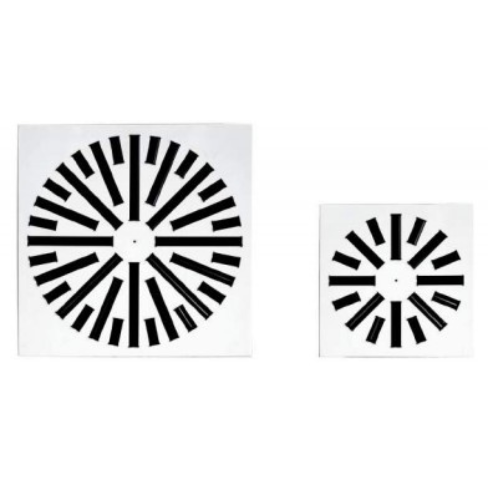 As aletas orientáveis, fabricadas em PVC de alta resistência, estão disponíveis na cor padrão RAL 9005 (preto), ou RAL 9010 (branco) quando especificado. Cada aleta pode ser ajustada individualmente, permitindo controle preciso da direção e do padrão de fluxo.